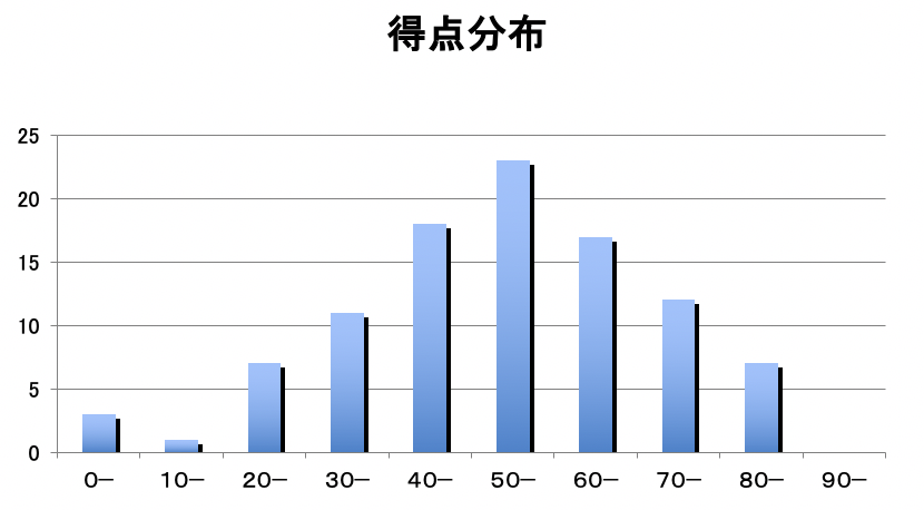 - 受験者は,99名.平均点は52.95点,標準偏差は18.61点でした.