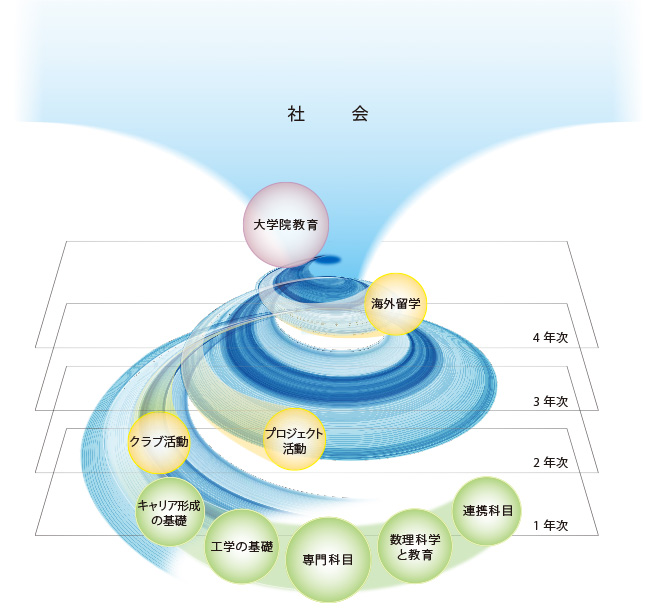 工学部が推進している新しい教育活動は、これまでも重視してきた全学科4年次生での卒業研究と合わせて、産業界が本学に求めるグローバルに活躍できる実践的技術者の育成に対しおおいに寄与するものと自負しています。このサイトでは、これらの取り組みを分かりやすくまとめていますので、広く一般の皆さまにご覧いただき、本学工学部の新しい教育活動の成果にご期待いただければ幸いです。