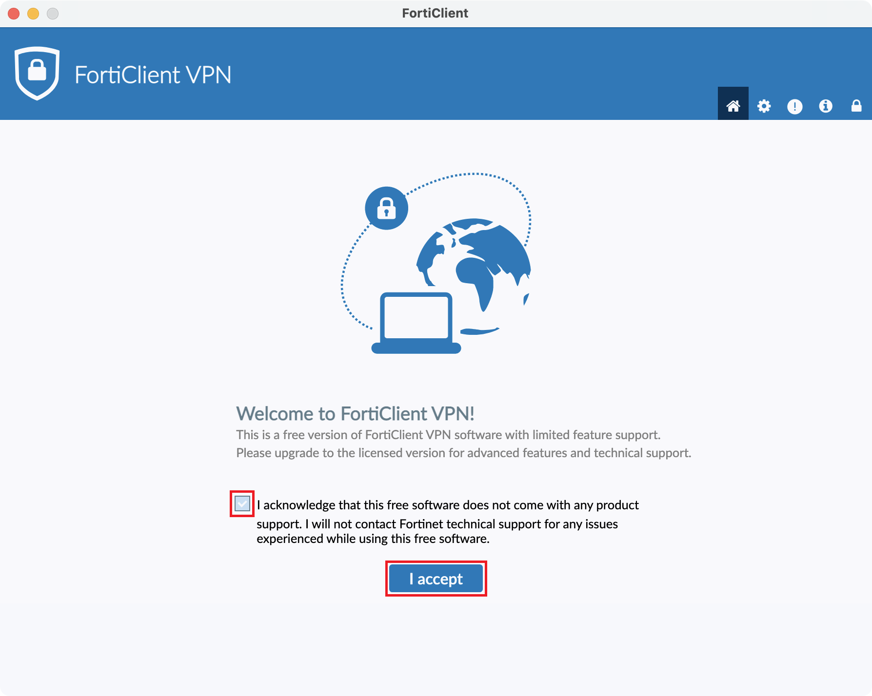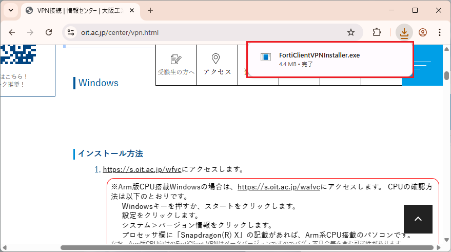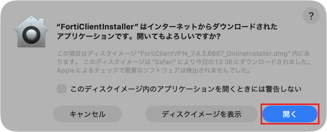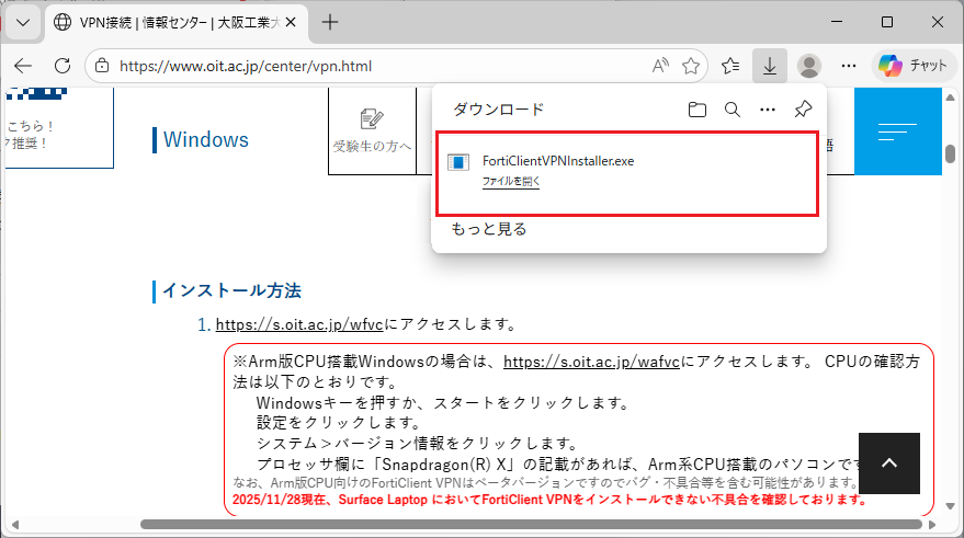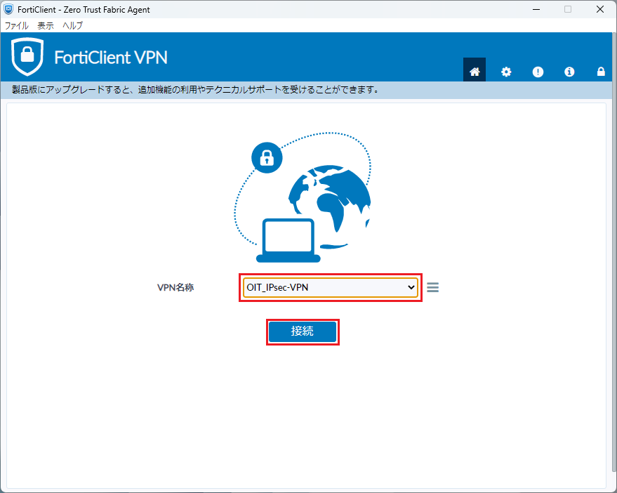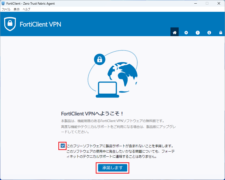 FortiClient VPNは、最新版の使用を推奨します。