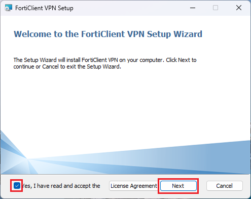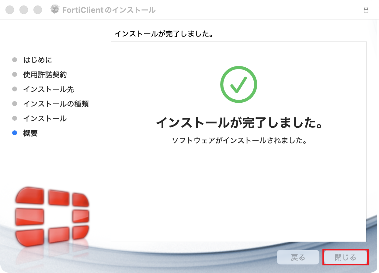 手順はこちらの設定方法の手順15~20をご参照ください。 - 「FortiClient VPN」を一旦アンインストールし、マニュアルをよく確認しながら再度インストールしてください。なお、似た名称のソフトウェアに「FortiClient」がありますが、有償のソフトウェアであり試用期間終了後は利用できなくなるため、誤ってインストールしている場合はアンインストールしてください。