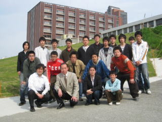 ![]() 2009年度研究室メンバー (淀川河川敷にて応用化学科棟をバックに) |