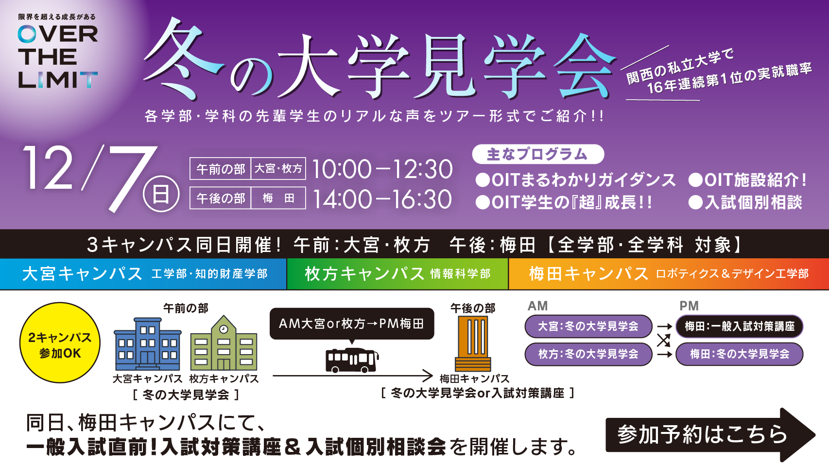 理想のキャンパスライフを最新のハイテク機器を備えた大宮キャンパスでは、9学科の学生がそれぞれの専門分野で学び、最先端の研究に取り組む環境が整っています。大阪市内に位置し都市の利便性を享受しながらも、淀川沿いの緑豊かな自然に囲まれた、快適な学習空間となっています。
