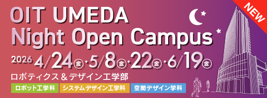 OIT梅田タワー地上21階、地下2階建て、高さ125メートルの高層キャンパス。絶好の地の利を生かし、最先端の設備・環境のもと、産・官・民との連携や、ロボット技術とその技術を魅力ある製品やシステムにつなげるデザイン力を持った新時代の人材を育てます。
