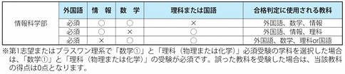 • 「外国語」に加え、「数学」「情報」は必ず1教科以上を受験してください。