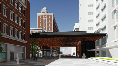 大宮キャンパスの正門である片岡安メモリアルゲートをくぐると正門・中庭と連動した巨大な屋根付き広場「ビッグキャノピー(仮称)」が誕生します。