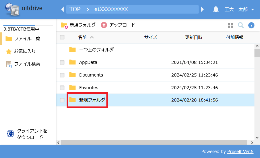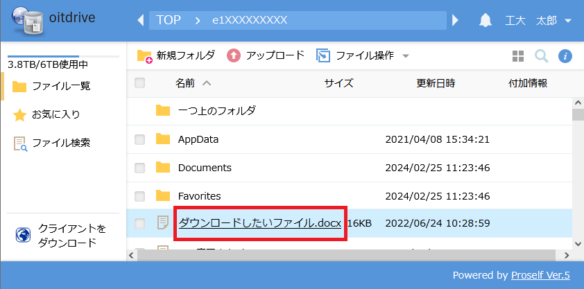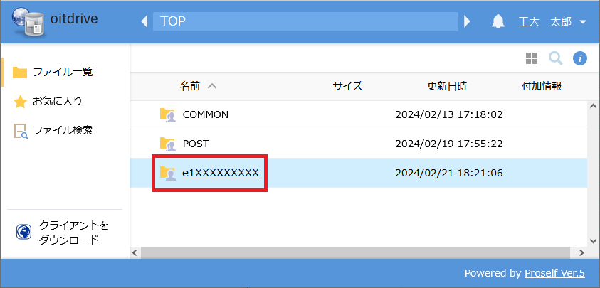 - ログインすると自動的に当該フォルダー内に移動します。ファイルの場合は当該ファイルが強調表示されます。