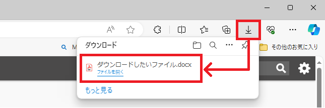 - ダウンロードフォルダー内にダウンロードしたファイルが存在することを確認します。