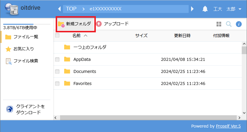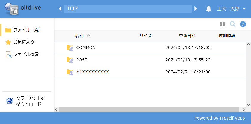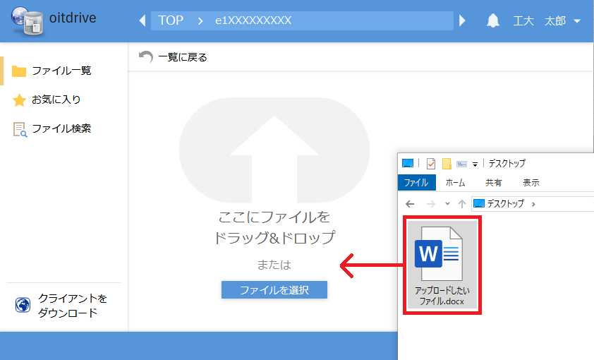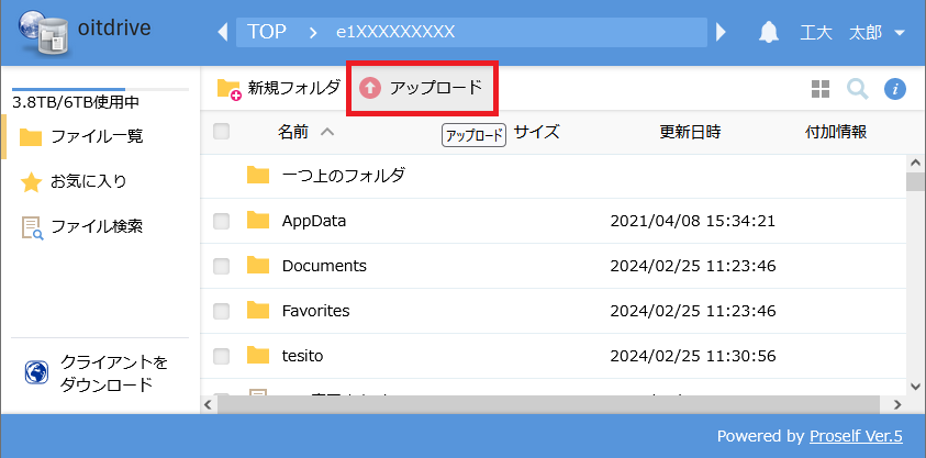 - Windowsだけでなく、Mac、iOS、Androidからのアクセスも可能です。ただし、一部機種・環境においては利用できない場合があります。特に、他の環境からダウンロードできなくなる恐れがありますので、Macで作成したファイルをoitdriveにアップロードするときはファイル名に「~」を使わないでください。