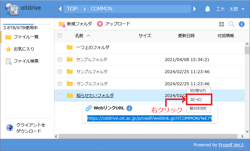 教職員から学生に対して、COMMON内の特定のフォルダやファイルを指し示したい時等に利用できます。