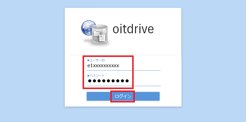 - oitdriveのログイン画面が表示されるのでID/PWを入力しログインします。既にログイン済みの場合は表示されません。