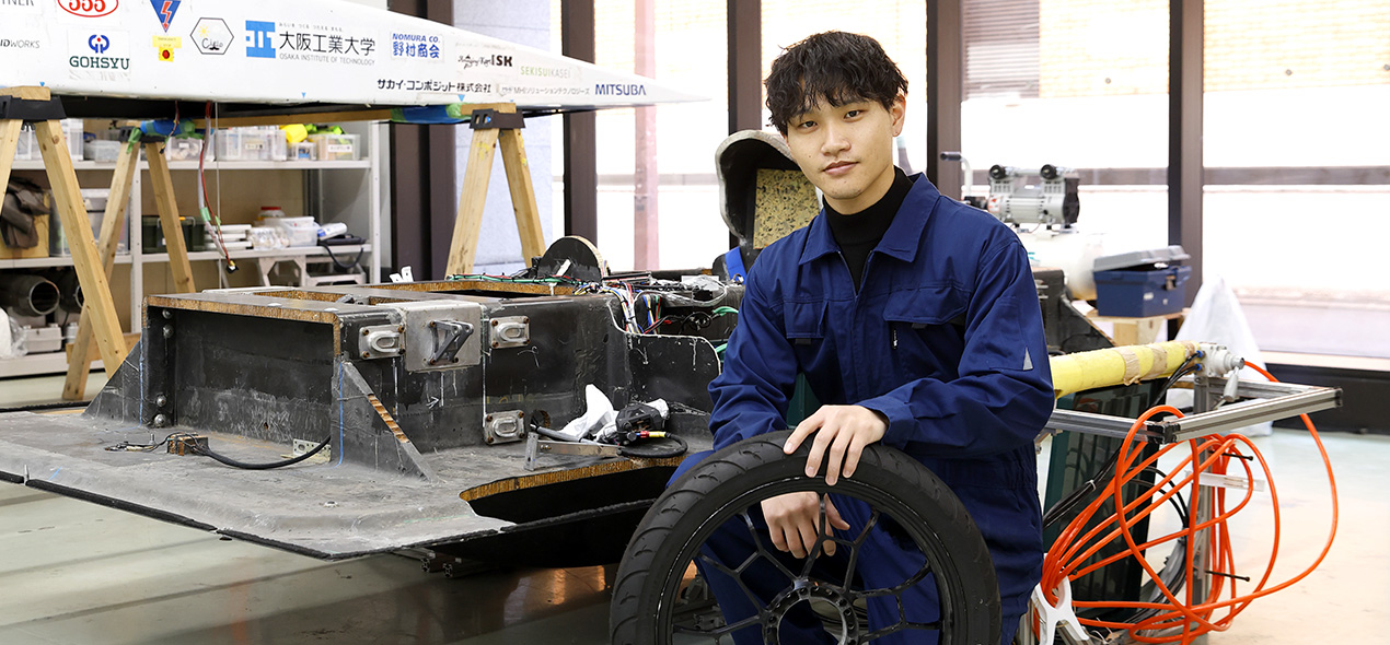 大阪工業大学を進学先として選んだのは、研究が多彩なイメージがあり、様々な機械に触れられる機会があると思ったからです。