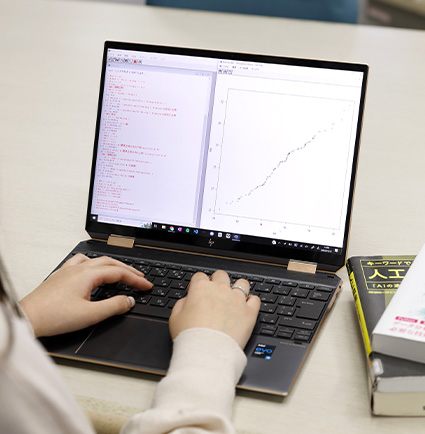 データから新たな価値を創造するにはどの分野においてもより意欲的に学び、それを真の意味で自分のものにする必要があります。また、物事に恐れず挑むことで得られる新たな視点も大切です。私はこれからも、この学科で様々な知識や経験を吸収して、自身のスキルアップに励みたいと考えています。