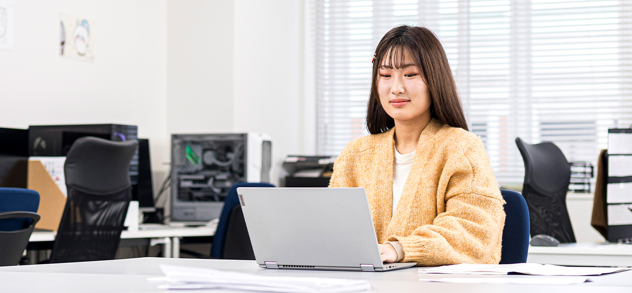私が大学選びにおいて重視したポイントは、大きく2つです。興味があるプログラミングはもちろん、ものづくりのハードについても学べること。そして、就職に活かせる主体的・実践的な学びができる環境であること。電子・通信・情報工学を体系的に学べて、実験が多く、自分でテーマを設定してシステムの設計やLAN構築に取り組むPBL(課題解決型学習)科目「エレクトロニクスプラクティス」もある電子情報システム工学科は、私にぴったりだと感じて進学を決めました。