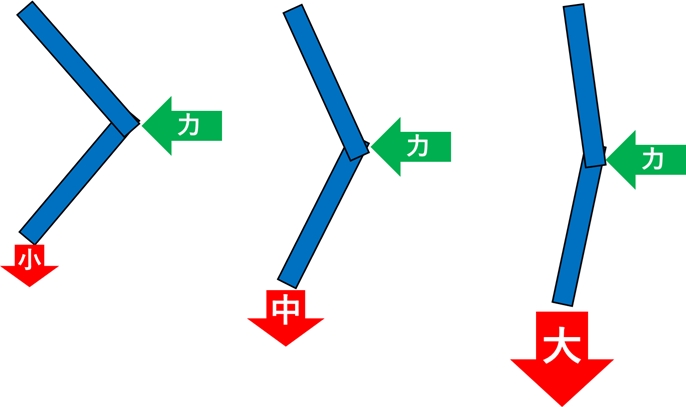 • (図4)トグル機構を用いると、力を大きくすることができる