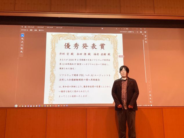 3年生はソフトウェア開発を前提にしたPBL(プロジェクト学習)に以前から取り組んでいるのですが、2025年度はAIエージェントをメンバーの1人として扱うような仕組みを開発に取り入れました。この授業は私1人ではなく、同じ学科の福安直樹教授と本田澄准教授と3人で考え、指導に当たりました。