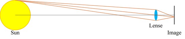 そこで少しだけ詳しく、光線を扱う「光学」を勉強してみました。熱力学第二法則に抵触しそうな部分はどうなっているのか?その結果、Abbeの正弦定理というものに行き当たりました。これによると、上記のような小さな太陽の「像」は不可能なのです。
