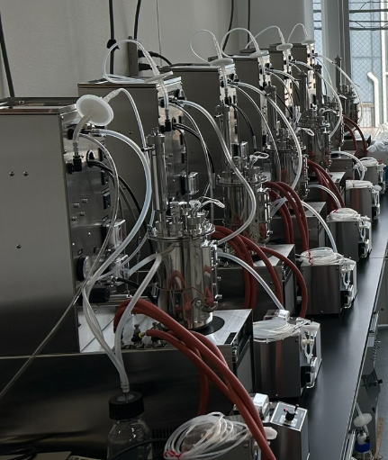 5L培養槽(4連、流加2系統、加圧、排ガス分析、オートサンンプラー、濁度計、セミオンライングルコース制御)