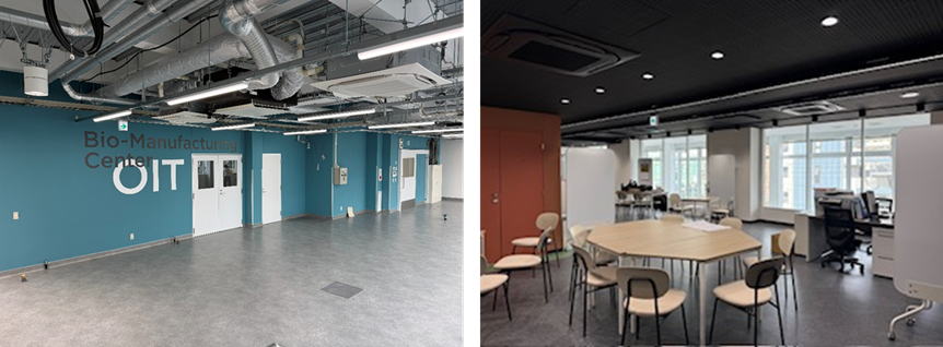 本研究室では、NEDOプロジェクトのご支援により、培養技術者の実践的育成やバイオものづくり実証・社会実装を支援することを目的とした「バイオものづくりラボ」を2021年春に設置することができました。2026年春には専用の新棟が竣工しました(