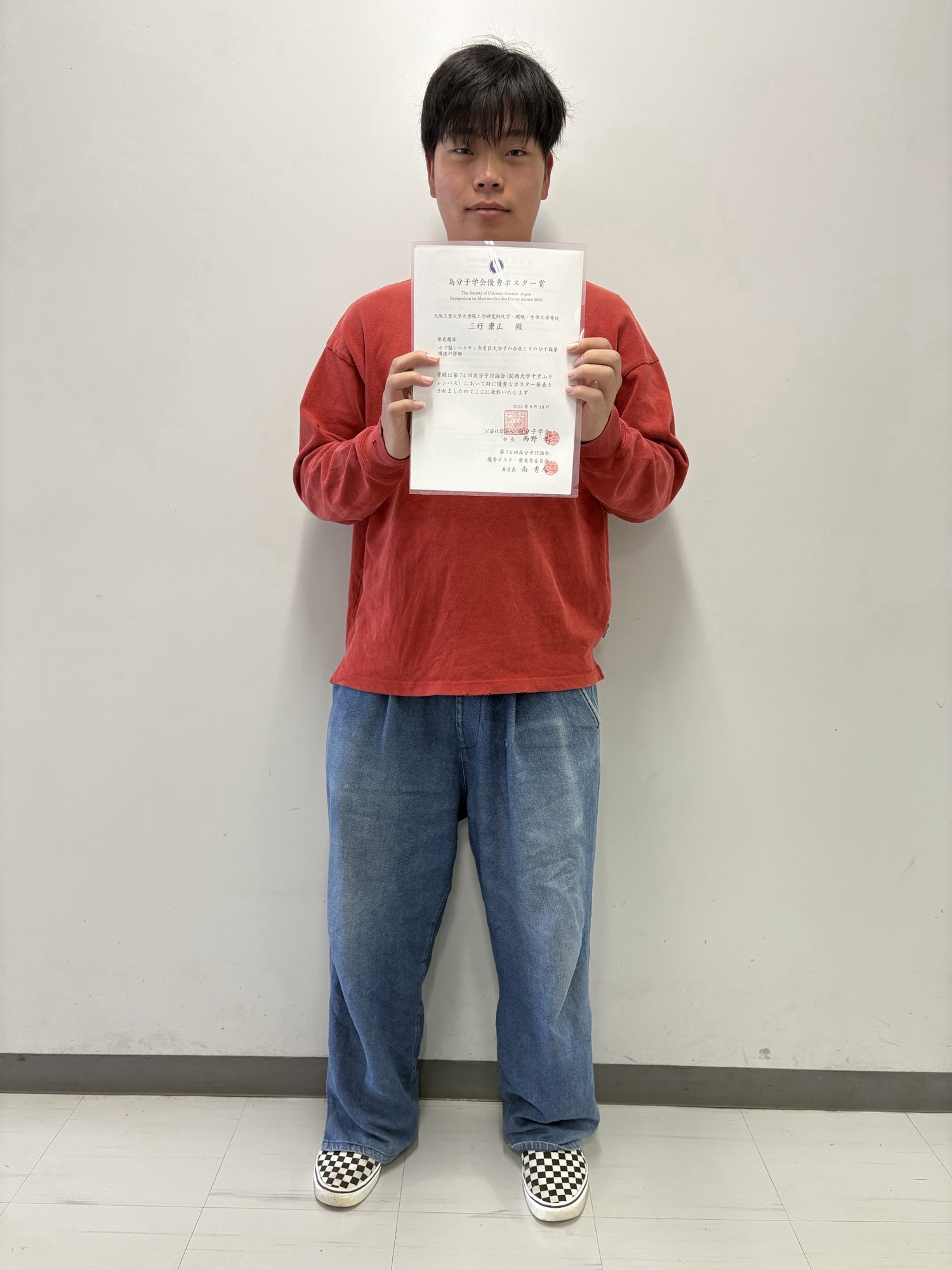 三好康正 (M1) が第74回高分子討論会にて優秀ポスター賞を受賞しました。
