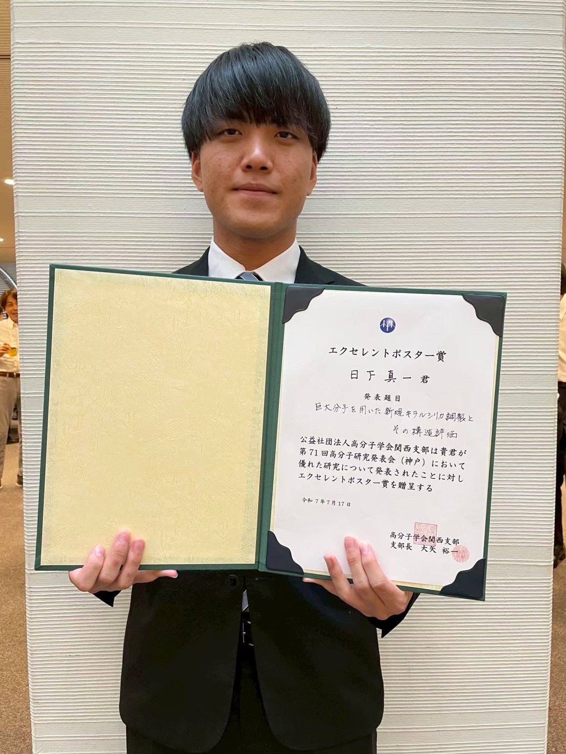 日下真一 (M1) が2025年繊維学会年次大会にてポスター賞を受賞しました。