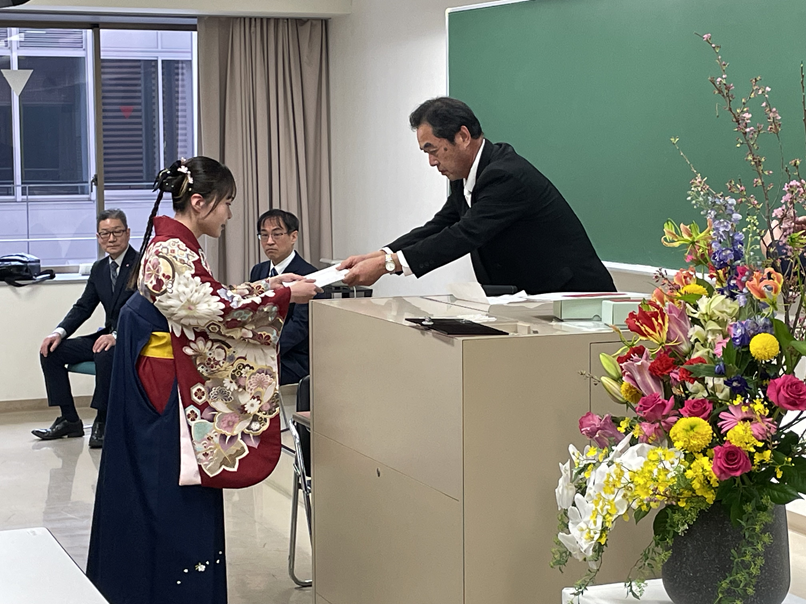 学位記授与式が開催されました。工学研究科を代表して修士(工学)の学位記が矢尾板君に授与されました。