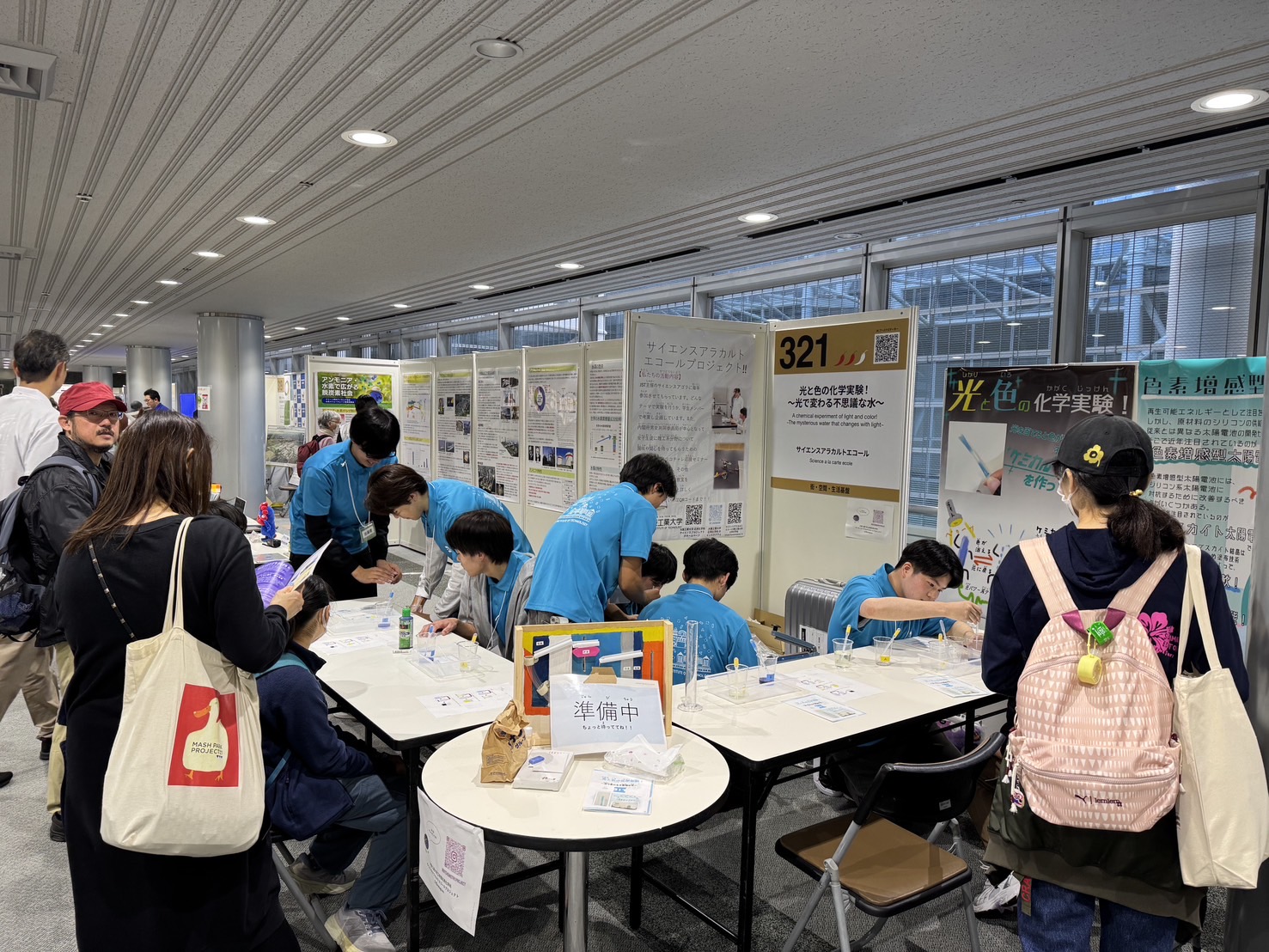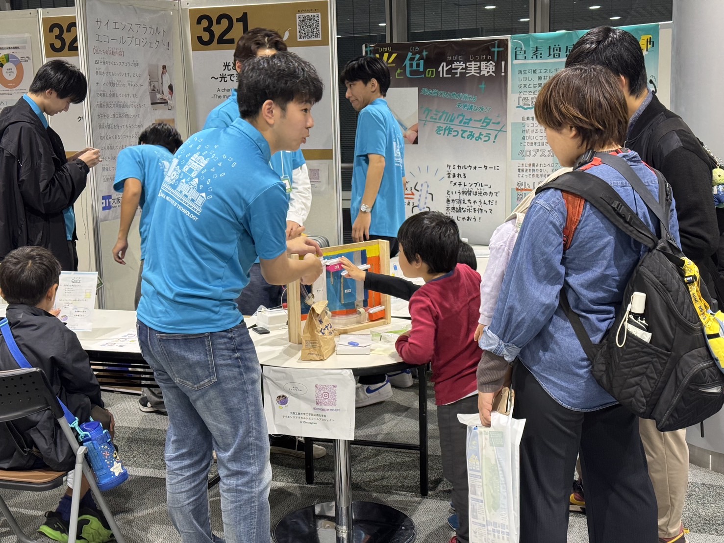 今年で12回目の参加となる今回は、サイエンスアゴラ2025のテーマ「科学とくらし ともに語り 紡ぐ未来」に沿い、我々サイエンスアラカルトエコールプロジェクトでは「光と色の化学実験! ~光で変わる不思議な水~」という企画を出展し、身の回りにありふれている光からエネルギーを取りだすことで起こる化学的な変化をみなさんに紹介しました。初日、2日目ともに多くの方々に我々のブースへ足を運んでいただきました。