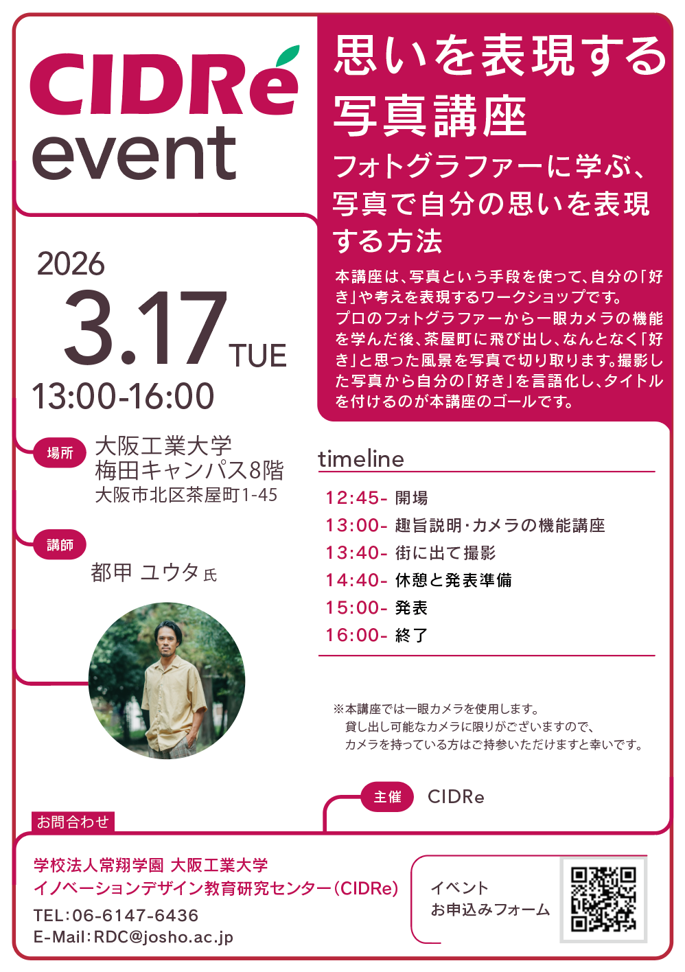 【CIDRe event】思いを表現する写真講座 開催いたします