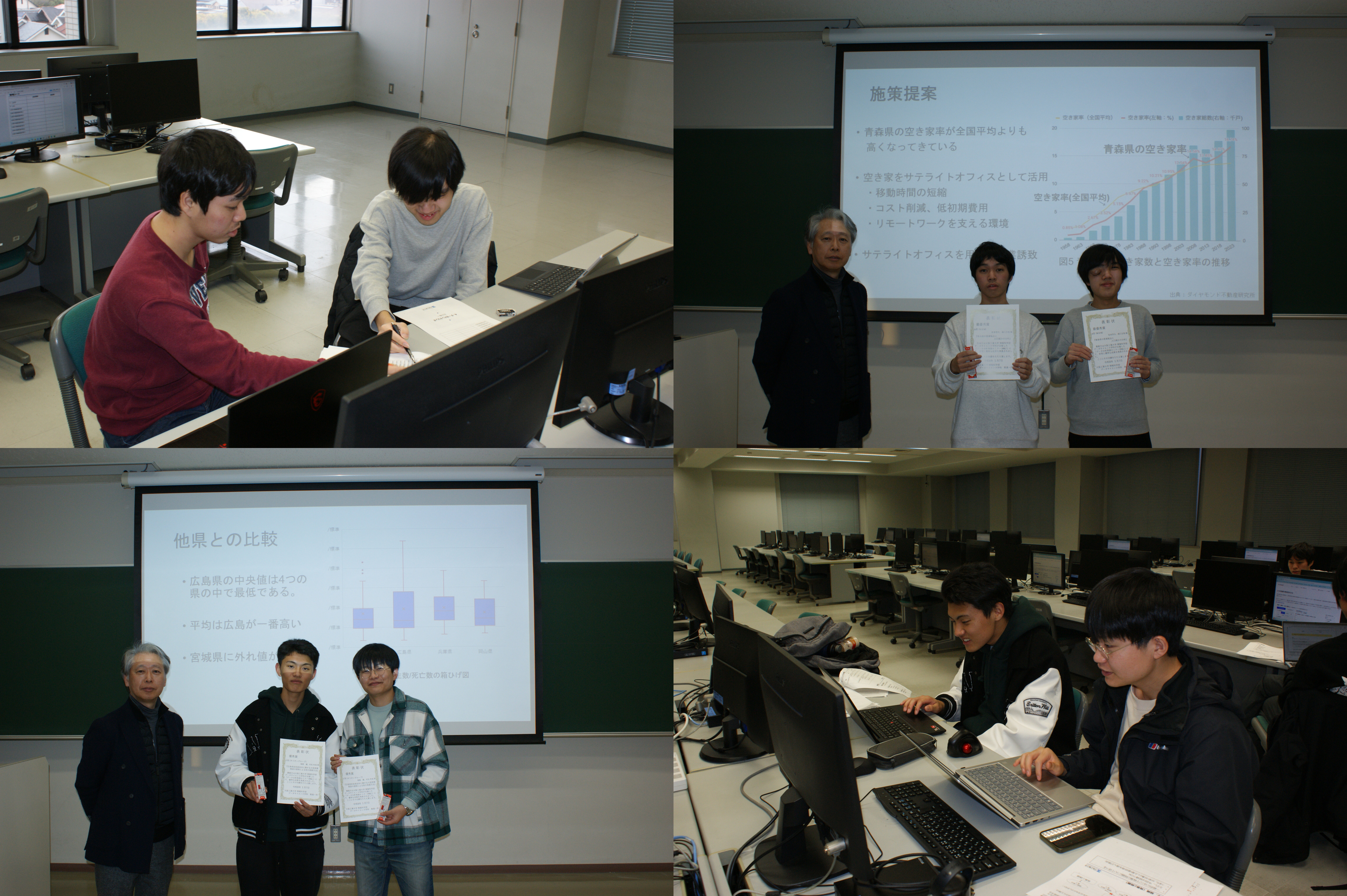 今年度で5回目となる「データ分析実践セミナー」を開催しました。本セミナーは、オープンデータを用いて日本の人口減少問題を分析し、対策を検討する4週間(計8コマ相当)のPBL(課題解決型学習)プログラムです。今年度はデータサイエンス学科1年生10名の希望者と同学科の全教員が参加しました。昨今の生成AIの普及を踏まえ、グループワークには生成AIも積極的に活用されました。最終日の成果発表会では、受講生同士による活発な質疑応答も行われました。受講者からは「仮説検証に適したデータ収集がいかに大切かを実感した」といった感想が寄せられ、実務に近いデータ分析のプロセスを学ぶ貴重な機会となりました。