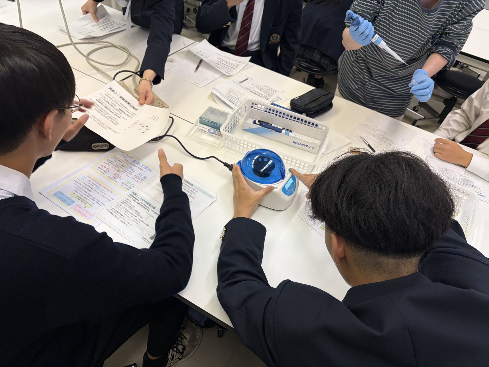 大阪学芸高等学校は、本年度第2回目となる今回は「より深く体験する」ことを趣旨としており、生徒は第1回目(6/21実施)での学びを踏まえて、より興味・関心のある理系の研究内容プログラムを選択し、体験学習に参加しました。