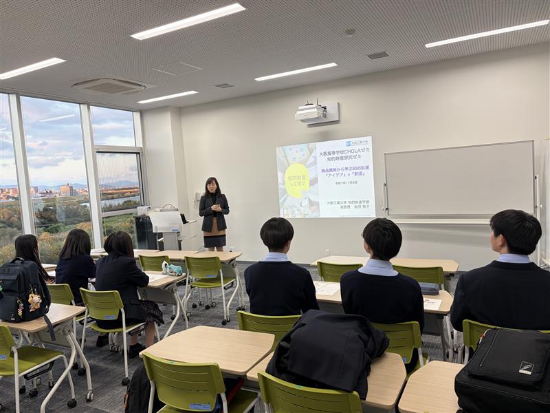 10/23、11/6、11/20の3日間、大阪高等学校*が独自に展開されている「CHOLA(コラ)ゼミ」が開催され、本学からは知的財産学部より吉田悦子准教授と関堂幸輔准教授などが参加され、生徒たちへの講義・説明を実施しました。