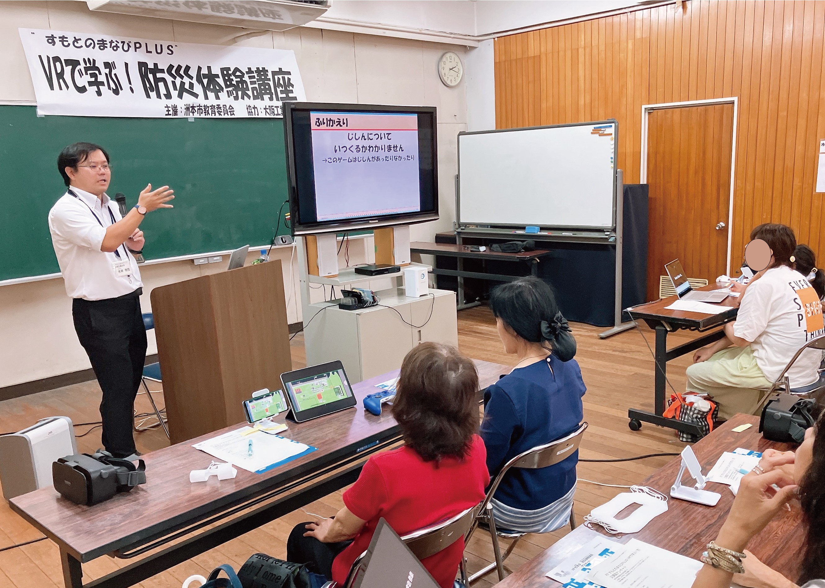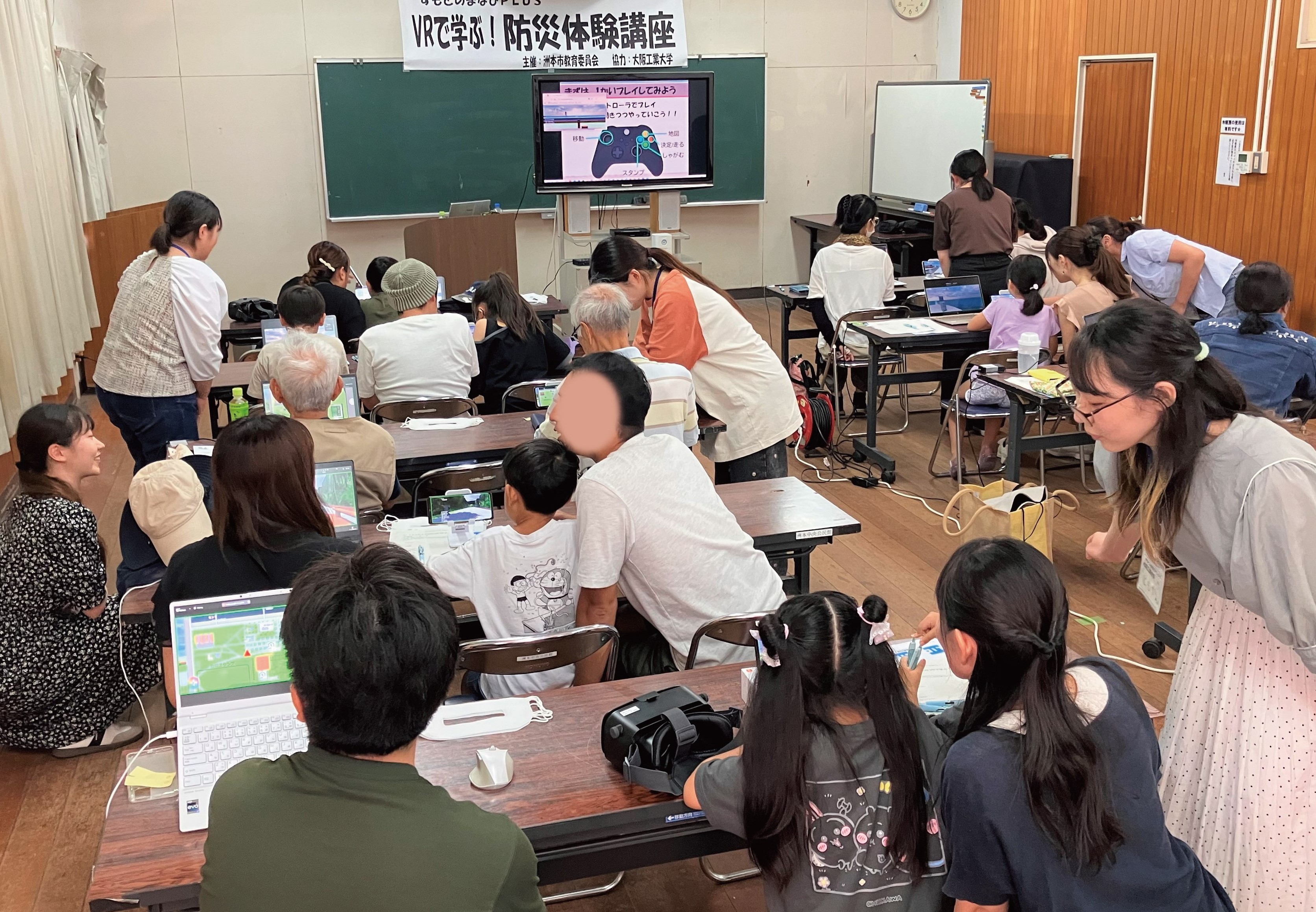 2025年9月7日(日)、洲本市公民館にて、洲本市教育委員会生涯学習課と連携し、地域にお住いの方に向けて「VR防災体験講座」を実施しました。