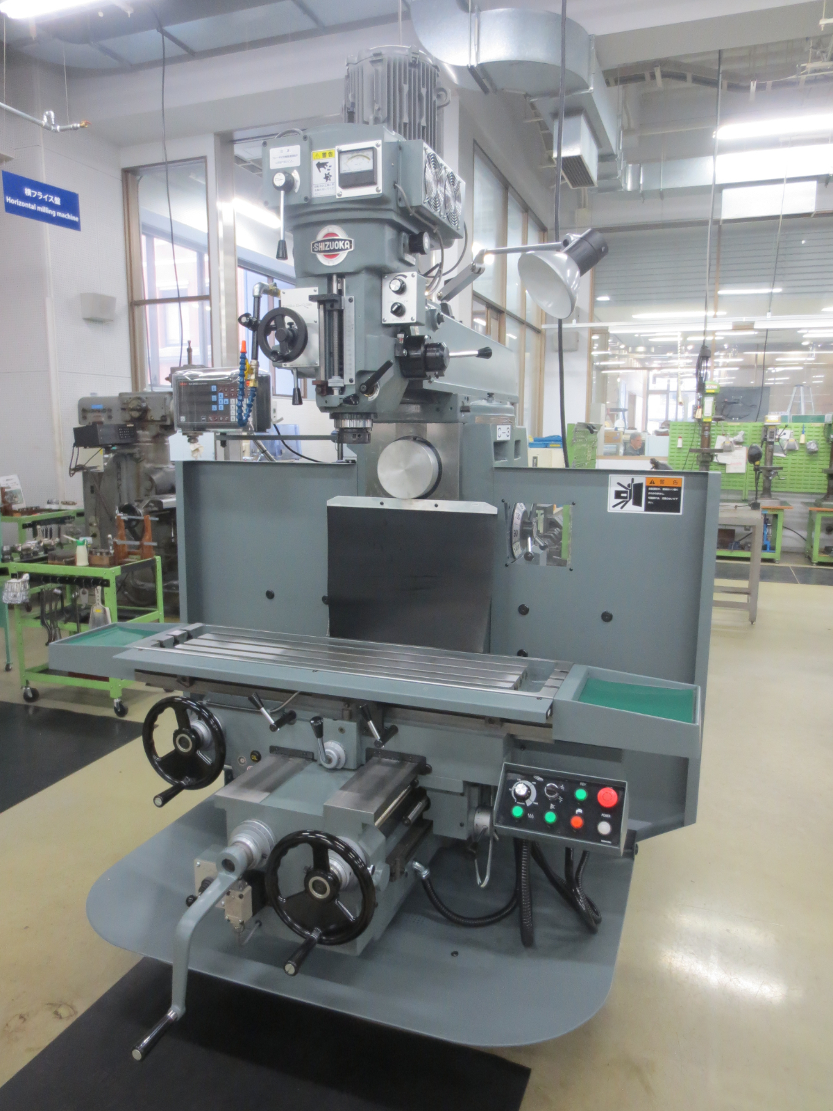 また、長年活躍してくれていた横フライス盤(HA/遠州機械製)と直立ボール盤(YD2-55/YOSHIDA製)は、このたびその役目を終え、ものづくりセンターを旅立ちました。