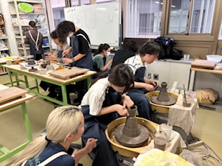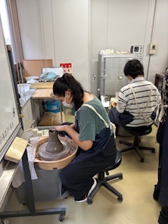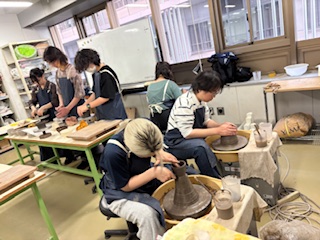 今日は、電動ろくろ組、手びねり組に分かれて制作しました。