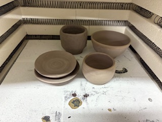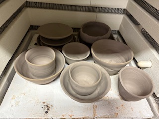 釉薬実験をするために、新しい作品の素焼きができるのを