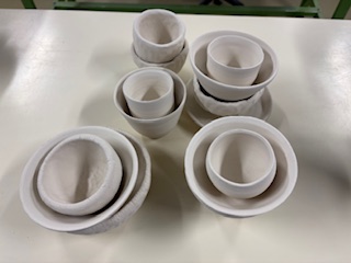 電動ろくろ組がたくさんひいた器から、初めて陶芸しに来てくれた人の