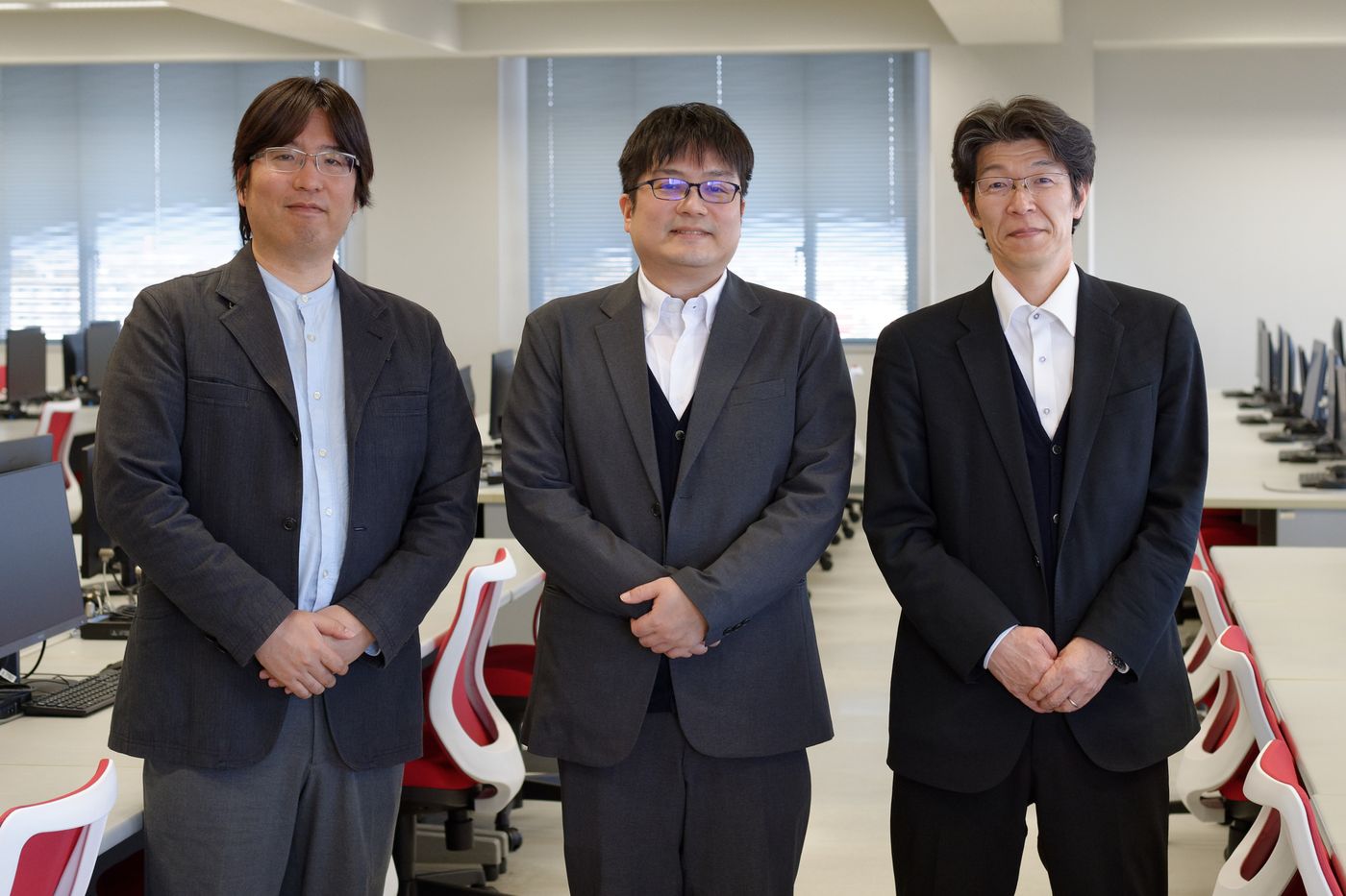 情報システム応用演習の担当教員(左から井垣先生,本田先生,福安先生) -
