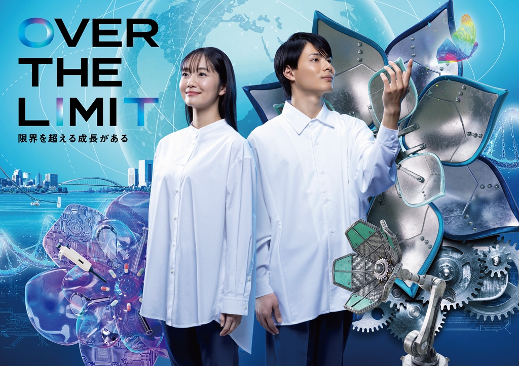 「OVER THE LIMIT 限界を超える成長がある」は、教育研究から社会貢献活動まで多岐にわたるフィールドであらゆる限界を突き抜けて、進化し続ける大学としての姿勢や意気込みと、質の高い教育力、最先端の研究力、就職力の強さなど、多彩なテーマで本学の魅力を示しています。