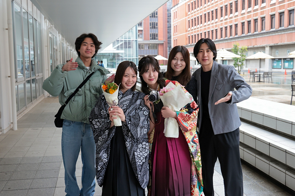 式を終えた修了生・卒業生は、恩師や研究室の後輩らに見送られ、晴れやかな表情で会場を後にしました。修了生・卒業生・保護者の皆さま、ご修了・ご卒業おめでとうございます。今後ますますのご活躍を心から祈念しています。