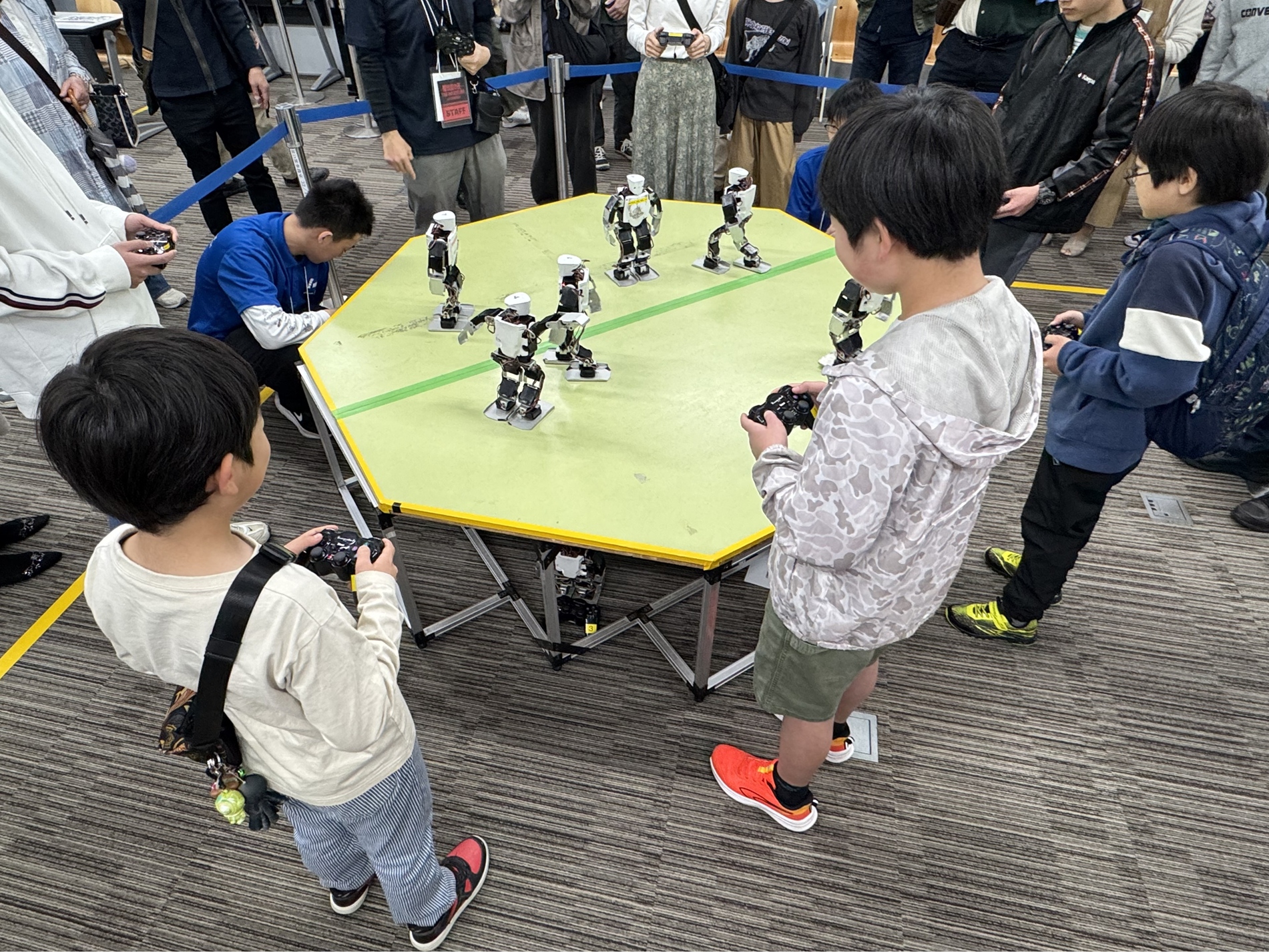 当イベントの最大の見どころは、3階常翔ホールで開催されたモンスターの実演&解説講座です。28日は、OレックとM田製作所、R-ムとSバルが、29日は、M菱電機とO阪工大、PナソニックとS津製作所が登壇し、定員576人の常翔ホールは満席となる盛況ぶりでした。実演では、開発の背景や技術的な工夫に関する解説に加え、来場者参加型でモンスターを動かす企画も実施されました。来場者からは驚きや感嘆の声が上がるとともに、笑いや拍手が随所で起こり、会場は大いに賑わいを見せました。これら全8企業・大学のモンスターは、6階でも特別展示が行われ、来場者が制作者に直接話を聞くことができる貴重な機会となりました。