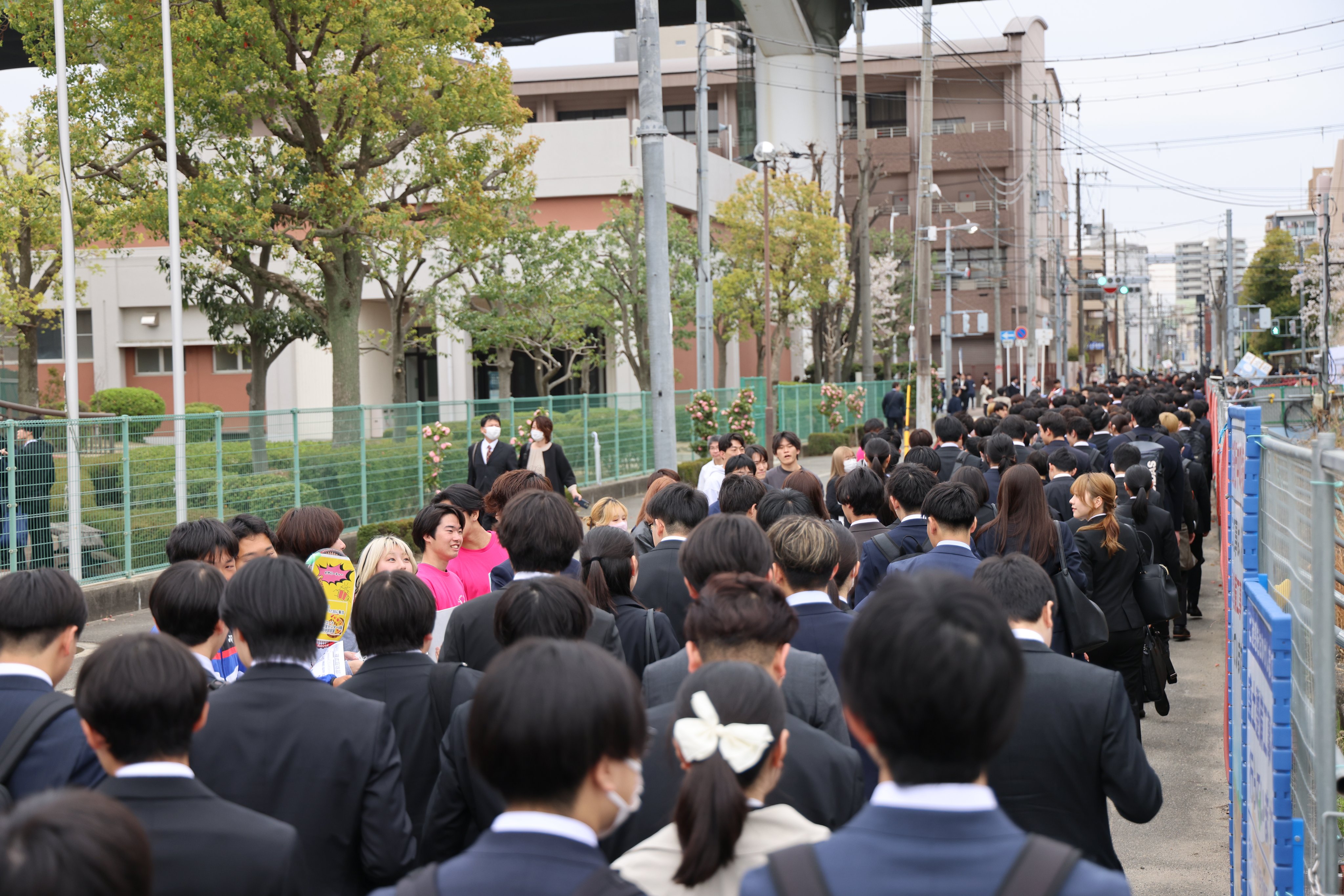 会場の外では、多くの在学生が新入生の門出を祝福した