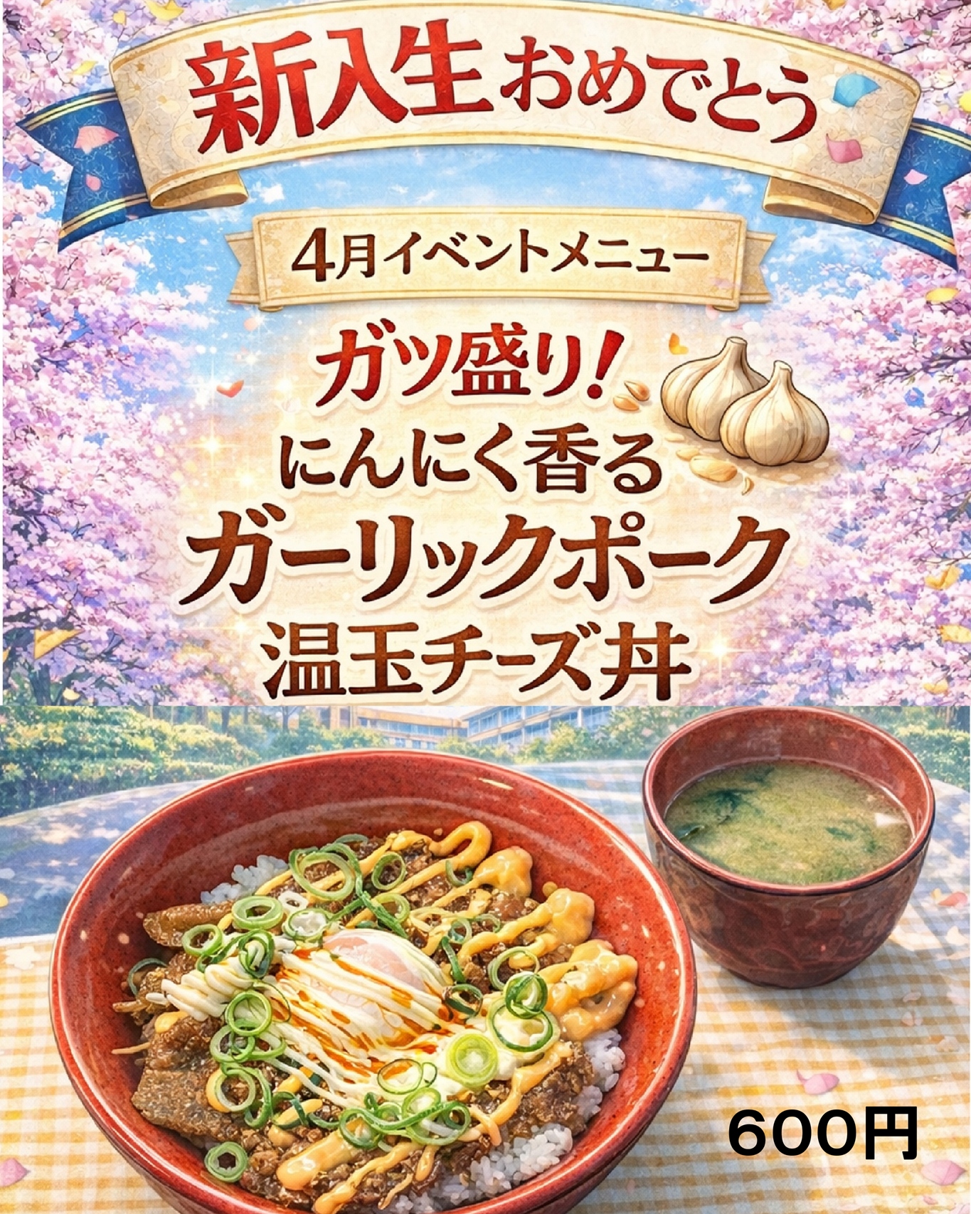 新入生・新学期が始まる4月に、お祝いの意味を込めハイカロリーメニューを提供✨