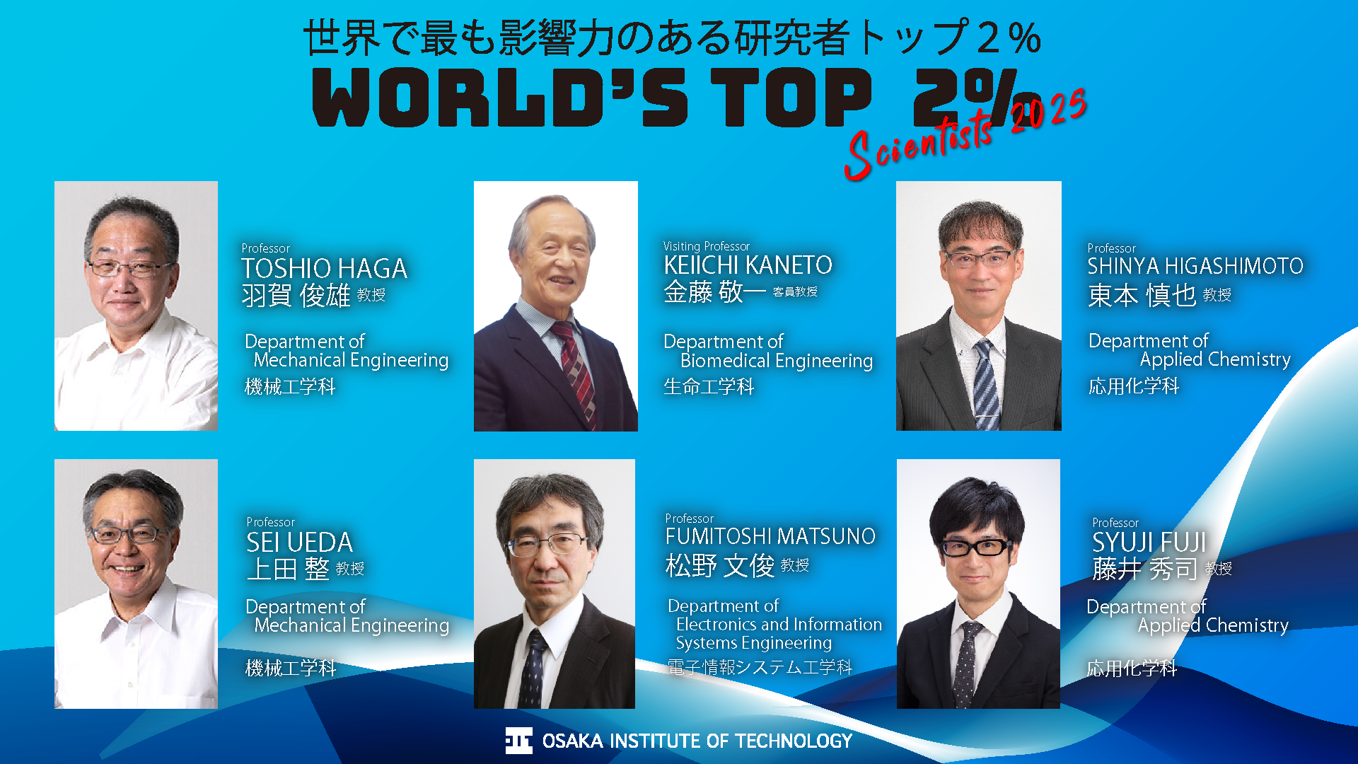 9月19日、スタンフォード大学とエルゼビアが世界のトップ2%の科学者を特定する包括的なリスト「標準化された引用指標に基づく科学者データベース」を更新・発表し、本学から6人の教員が選出されました。