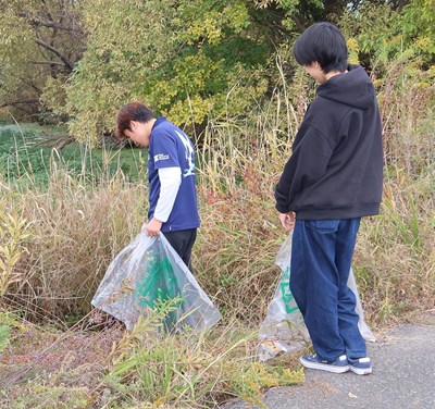ゴミを回収する学生 -