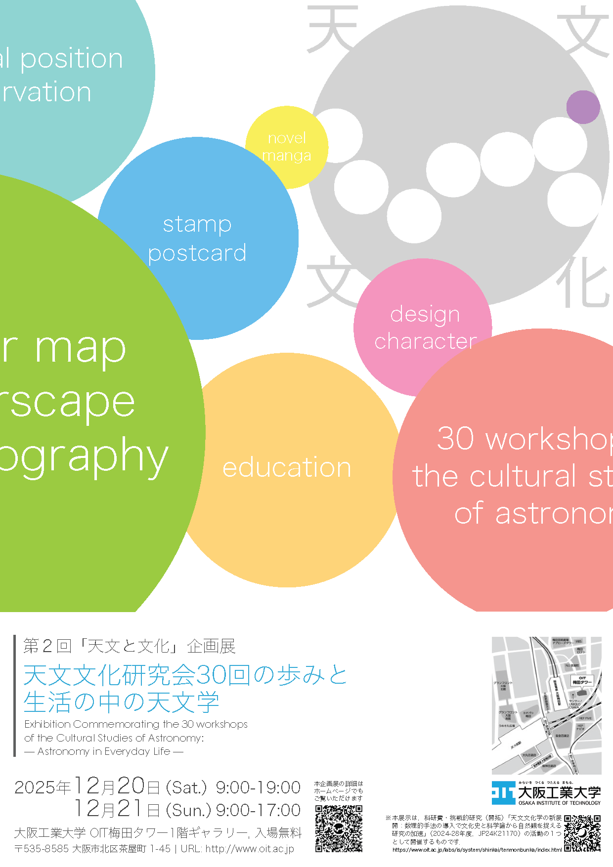 12月20日、21日に大阪工業大学梅田キャンパスにて、第2回「天文と文化」企画展を開催します。