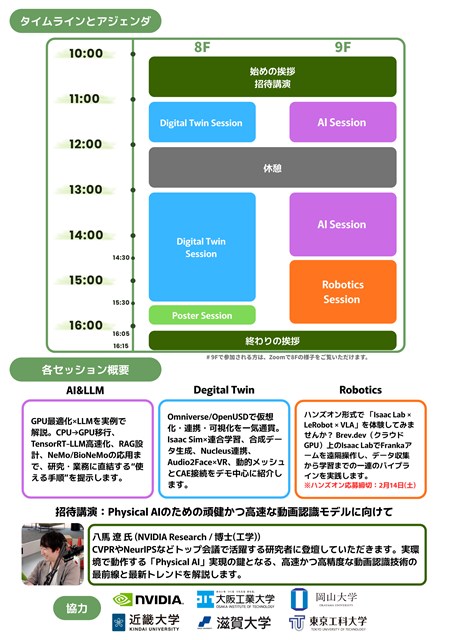 このたび、2月28日(土)に「GPUを用いた技術の深層と応用の最前線:AI・デジタルツイン・ロボティクス学生アンバサダー合同ワークショップ」を開催いたします。