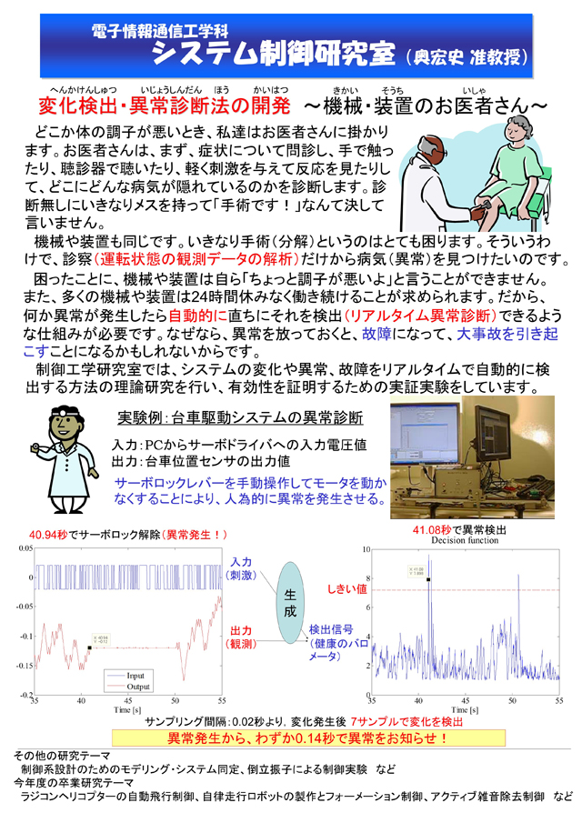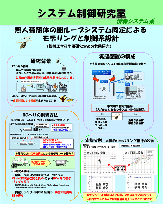 システム制御研究室では,「制御」,「モデリング」,「システム同定」をキーワードに卒業研究を行います。